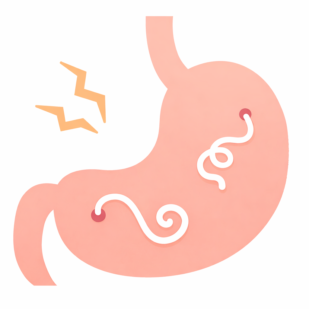 胃の粘膜に入り込み、強い炎症と激しい痛みを引き起こします。