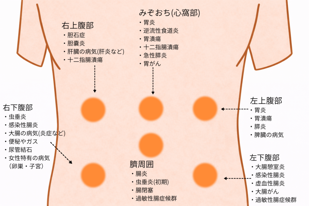 腹痛の場所でわかる原因|どこが痛いと何の病気?【医療コラム第80回】|東松原駅の内科・消化器内科・胃カメラ・大腸カメラ|いけざき内科・内視鏡クリニック