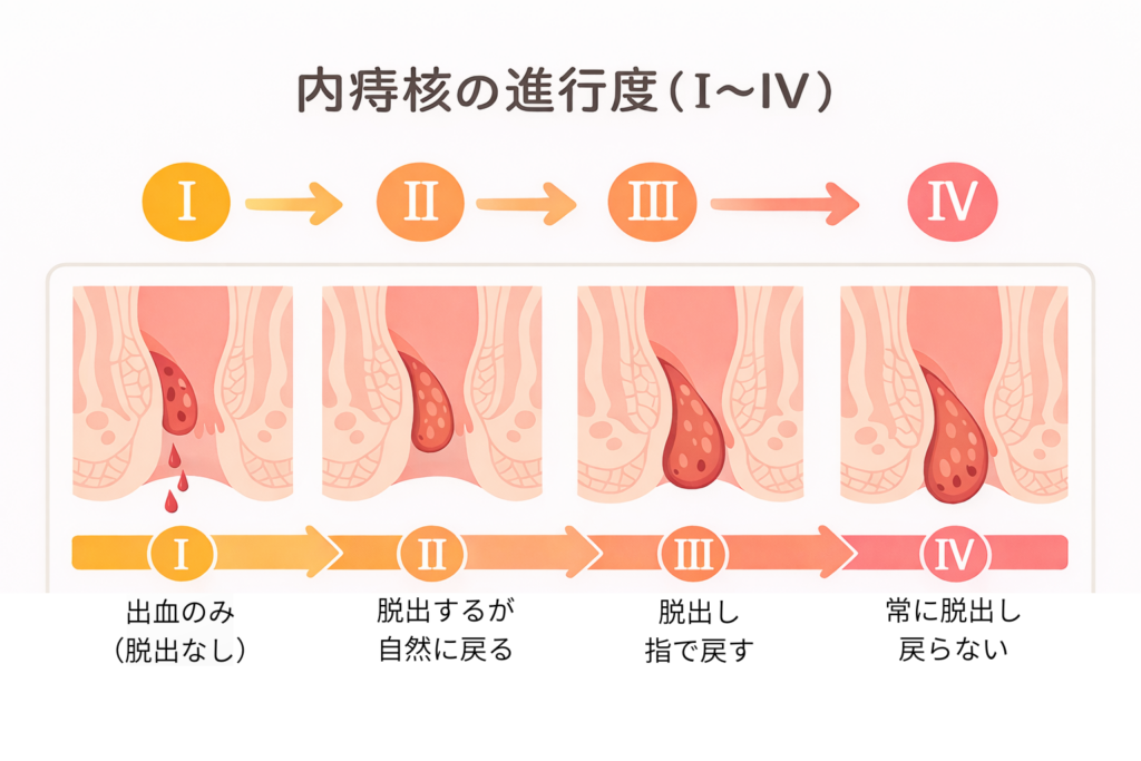 ・内痔核の進行度(I〜IV)